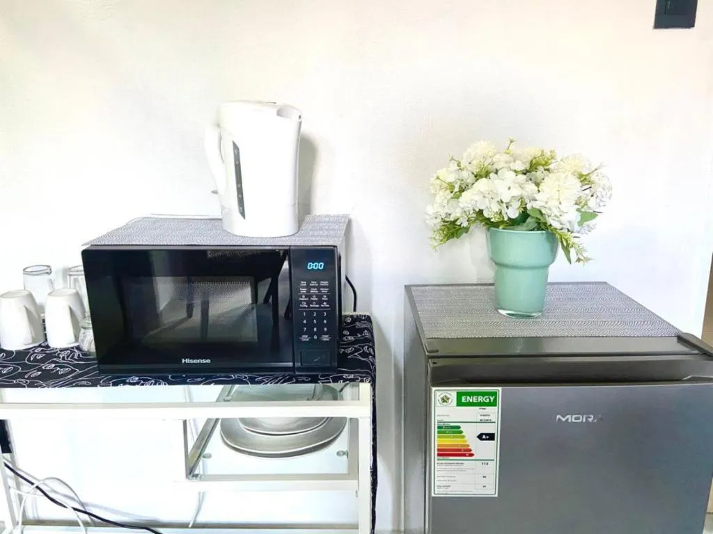 Features a roomy super-king bed with crisp, white linen, king pillows for added comfort, and clean towels. Flat-screen TV with Netflix, coffee and tea maker, bar fridge, and air conditioning are all available for your enjoyment. Internet access is available without charge. A shower or a bathtub is available in the room's en-suite bathroom.